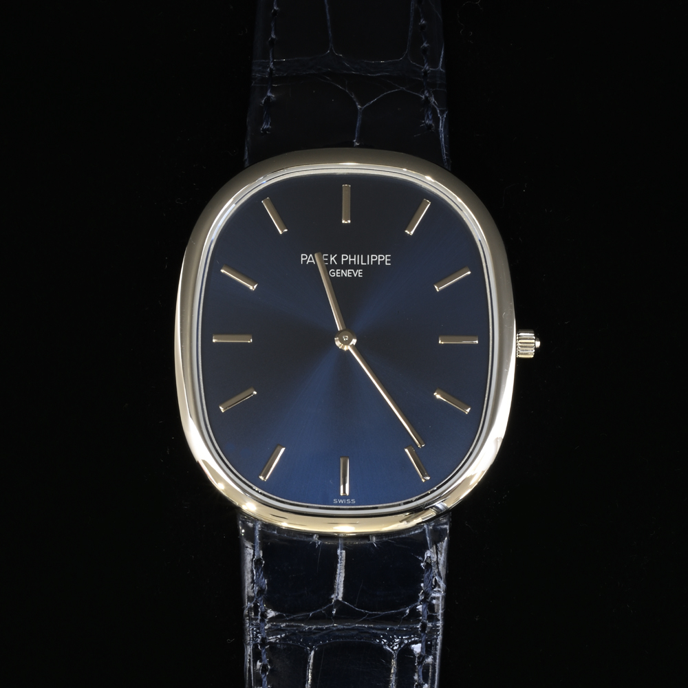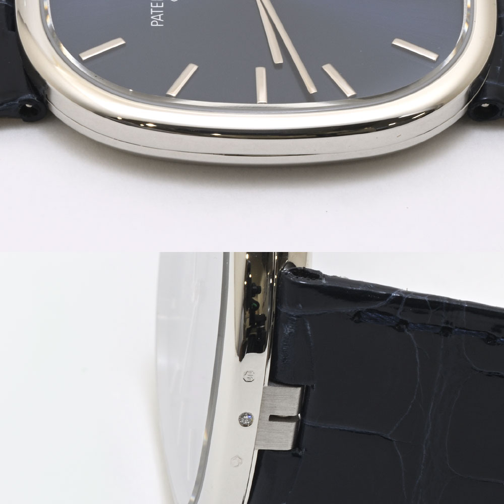 *最初のゴールデンエリプスは1968年発表です。2008 年、パテック フィリップは、ゴールデン エリプスの 40 周年を記念して、初めてプラチナ製のジャンボ モデルの新バージョンを発表しました。パテックのプラチナモデルは6時位置ケース側面に小さなダイヤが埋め込まれているのが特徴です。