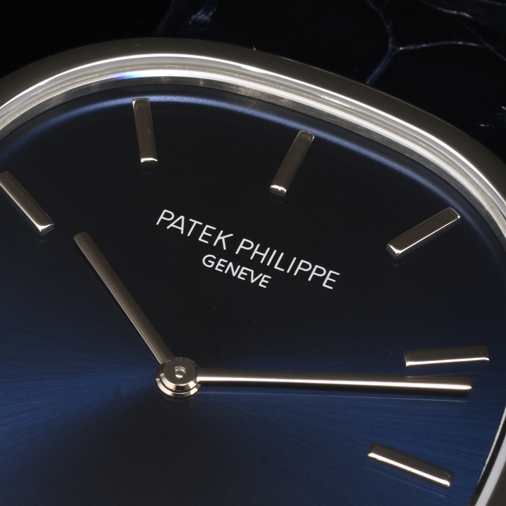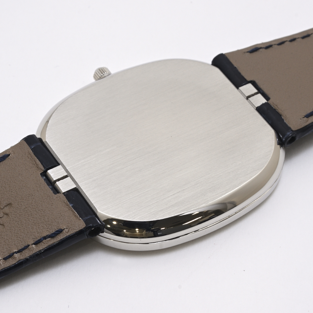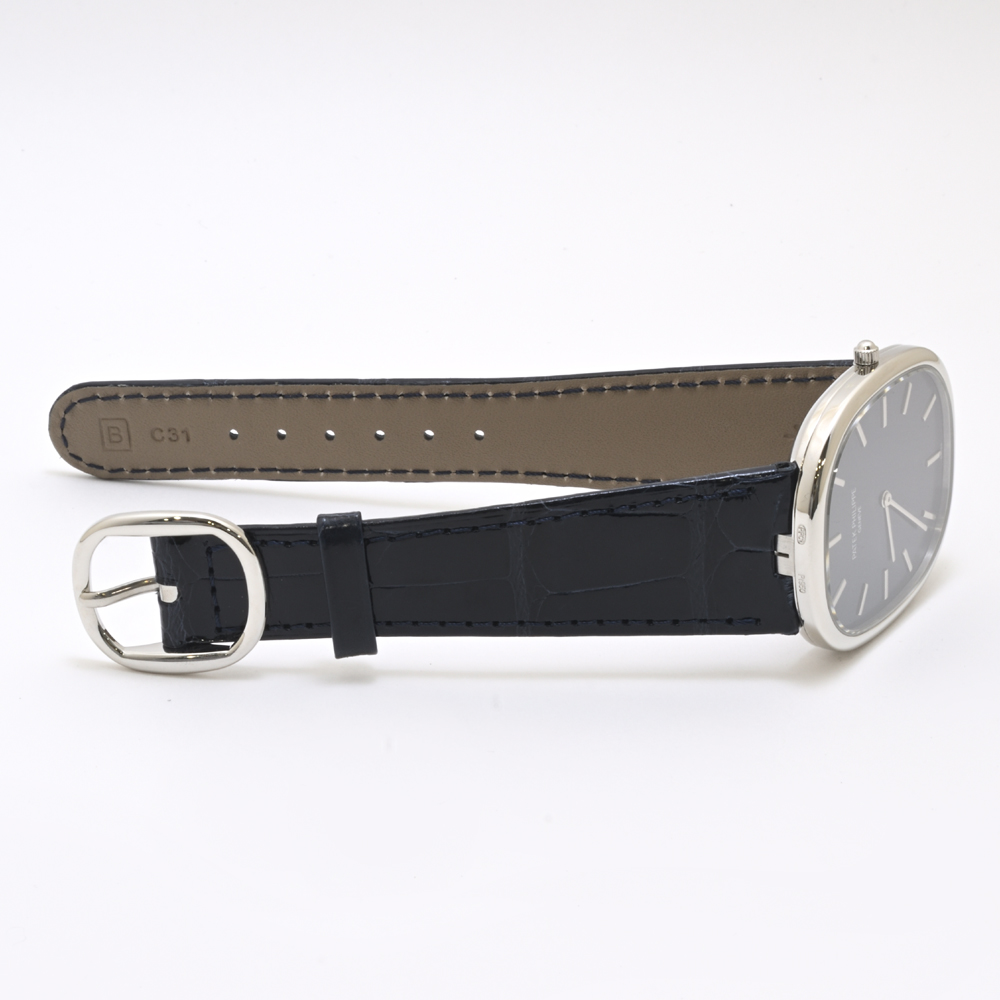 - *2025年8月にPPジャパン経由スイス本社にて、磨きを含むOH済です。ゴールデンエリプスはPPジャパンでのオーバーホールは認められていないそうで、スイス本社修理対象モデルです。一見さほど難易度の高い修理とは思えないのですが、繊細なケース形状の磨きについてパテックフィリップの基準を満たすためにはスイス本社の工房でなければ対応できないということでしょうか。余談になりますがゴールデンエリプスは9時側ケース側面のコジアケを差し込む部分が荒れているものが多いです。ケースの開閉ひとつとっても意外と難しいのでしょうか。当然のことながらこの個体の、コジアケを差し込む部分はきれいな状態です。