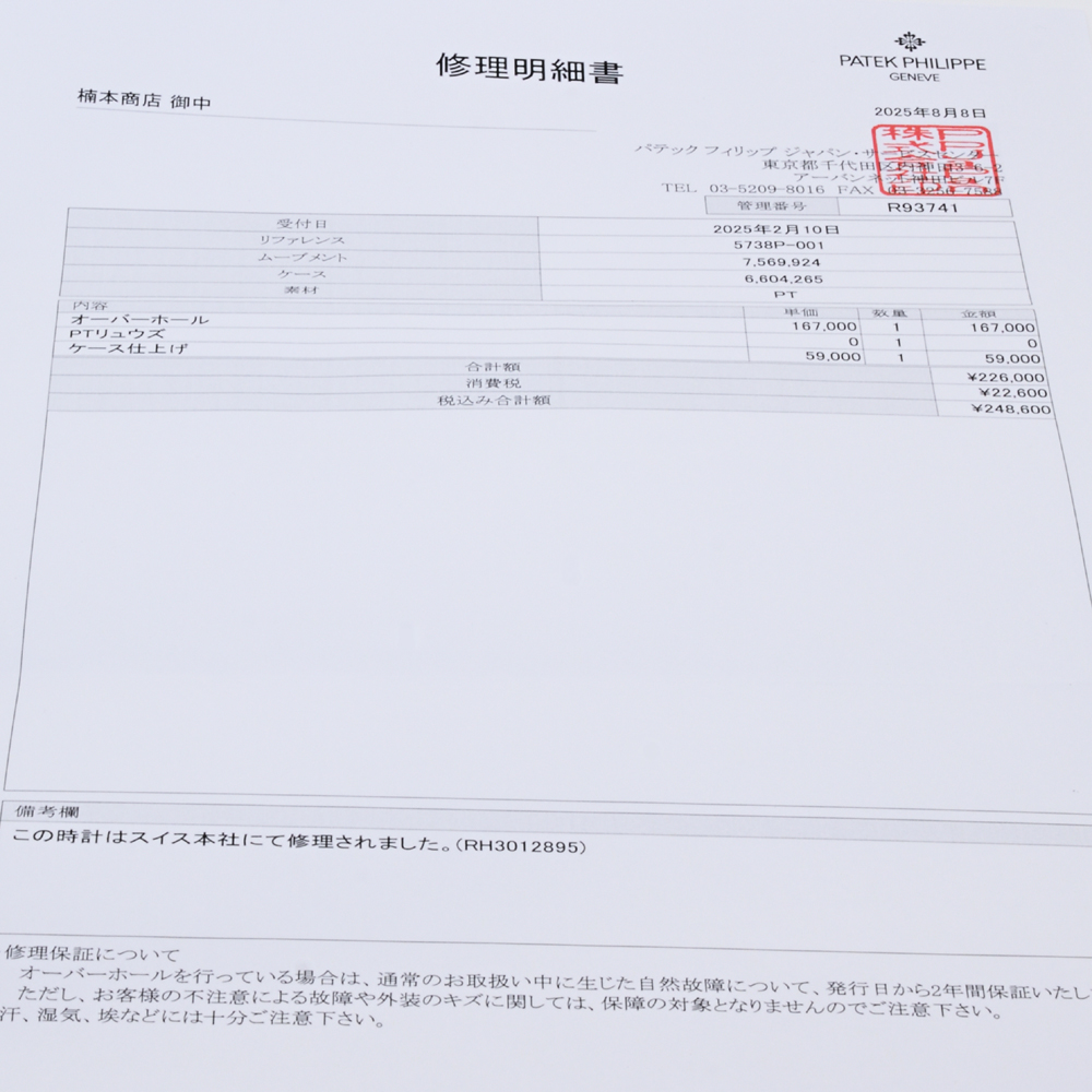 パテックフィリップ ゴールデンエリプス 5738P-001 PT950 自動巻 パテックOH(2025/8)