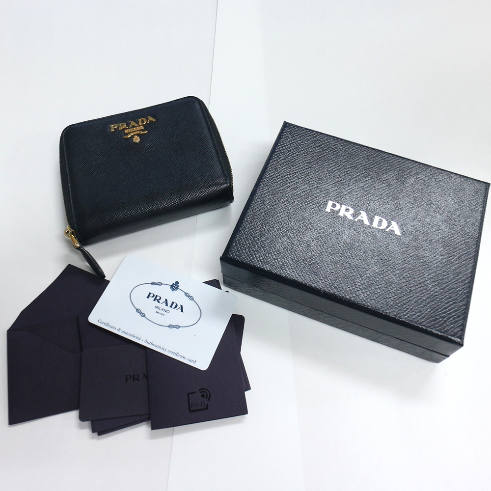 プラダ 2つ折り財布 サフィアーノレザー/ブラック 1ML036