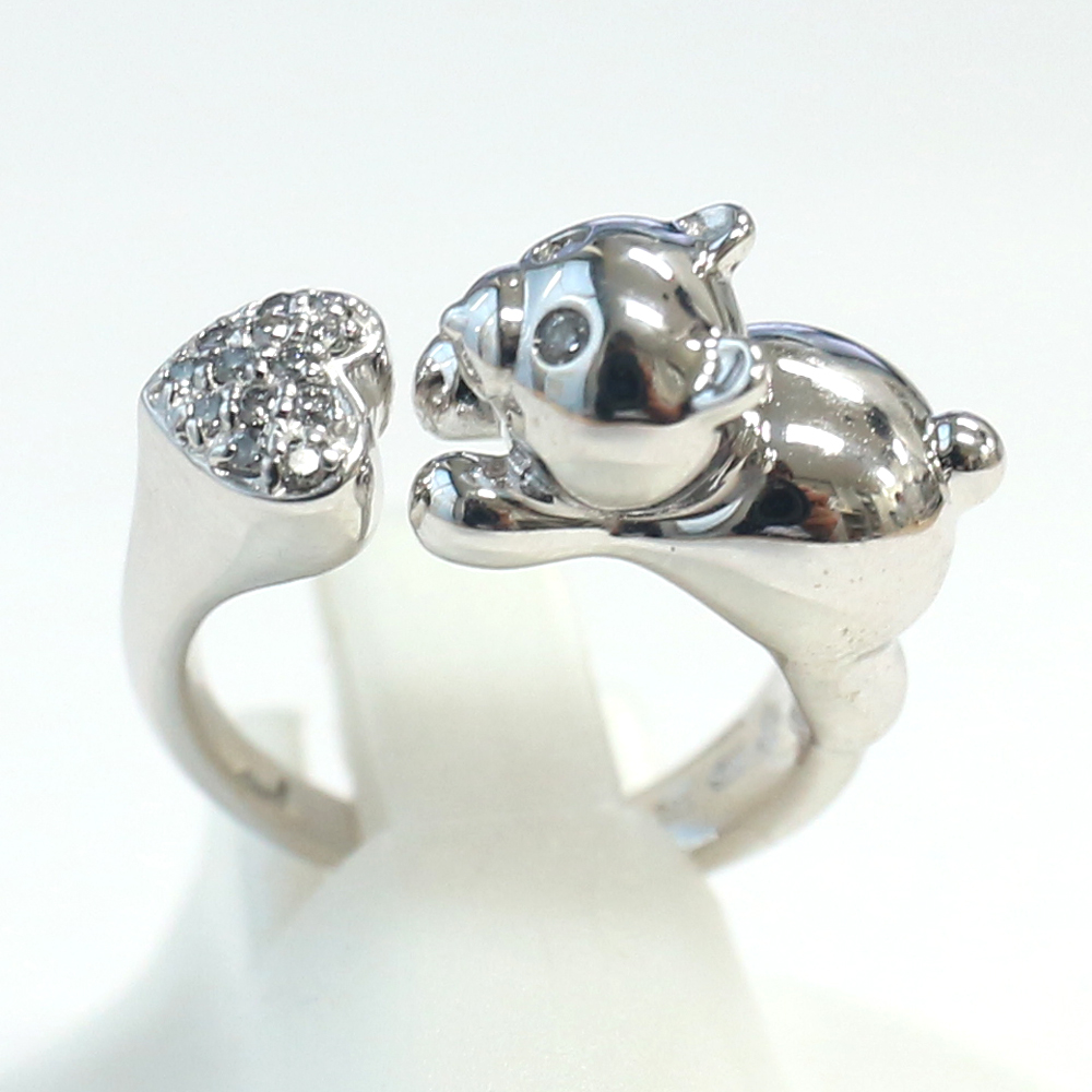 ポンテヴェキオ ベアーモチーフ ダイヤモンドリング クマ K18WG D0.10ct 約7号