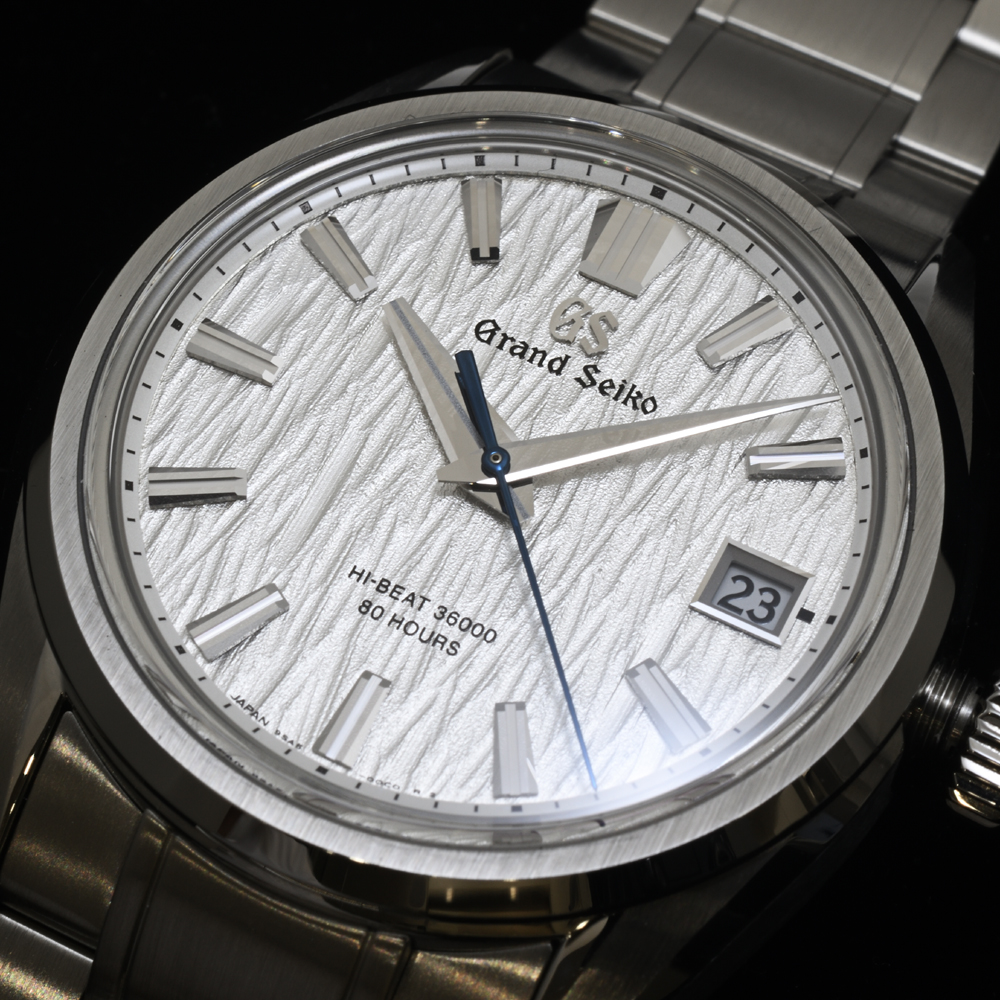 *公式ウェブサイトによりますと、岩手県雫石町のグランドセイコースタジオの近くには、日本でも有数の白樺の美林があるそうです。実際は白樺林で有名な平庭高原はスタジオから車で80キロほどの距離になります。さほど近くはないのですが、同じ岩手県ですし、豊かな自然に囲まれた工房でグランドセイコーが組み立てられていることには違いないと思います。白樺文字盤は、日本の情景を表現したグランドセイコーならではの文字盤です。数あるグランドセイコーの中でも秀逸な文字盤のひとつです。白樺の風景が思い浮かぶような味わい深さがあります。