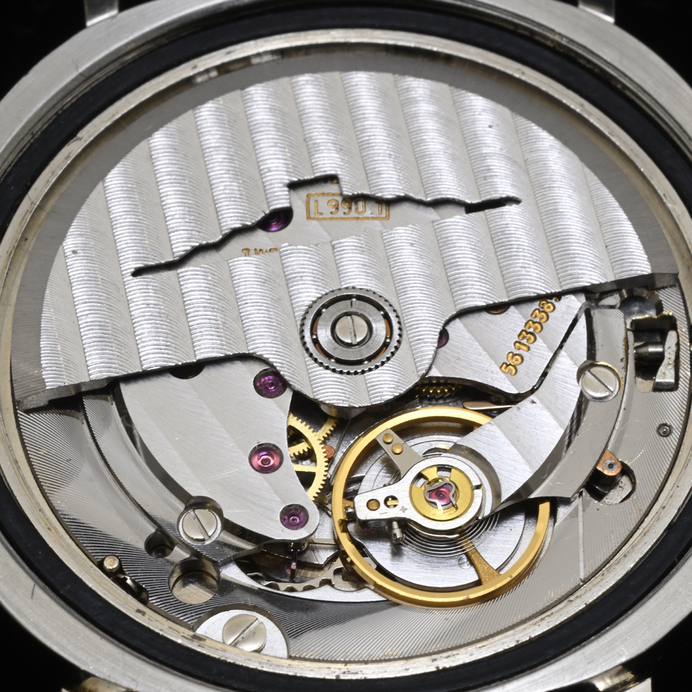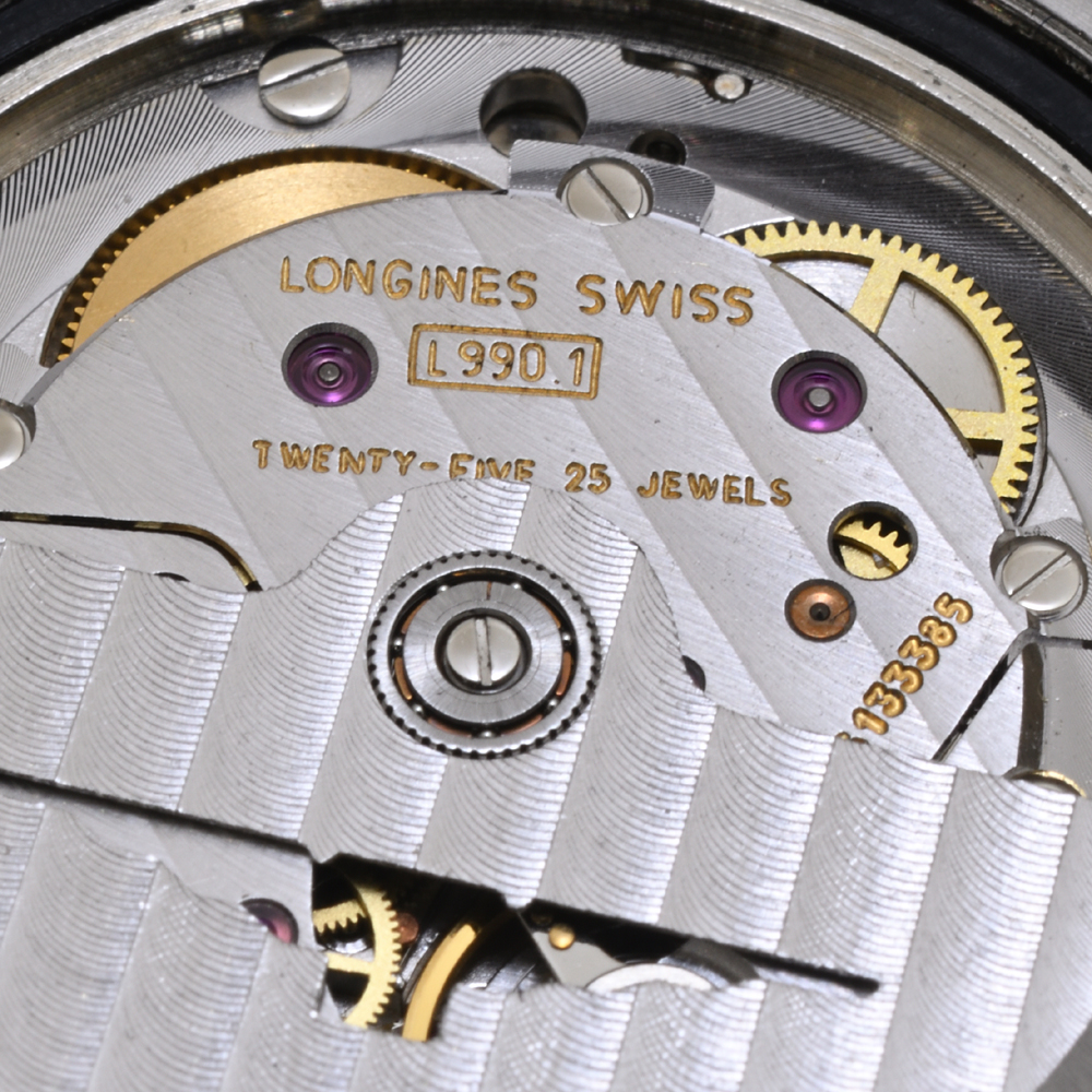 *ロンジン最後の自社ムーブメント【CAL.990】は、1987年に製造権利がヌーヴェル・レマニア社へ譲渡され、90年代初頭に【CAL.8810】として再始動しました。その後、【CAL.8810】はブレゲやロジェ・デュブイのベースムーブメントとして採用されることになります。特にロジェ・デュブイは、徹底したチューンナップを施し、世界最高峰の品質証明である『ジュネーブ・シール』まで取得しました。このことからも、ロンジン【CAL.990】がいかに素性の良い名機であったかが、お分かりいただけると思います。