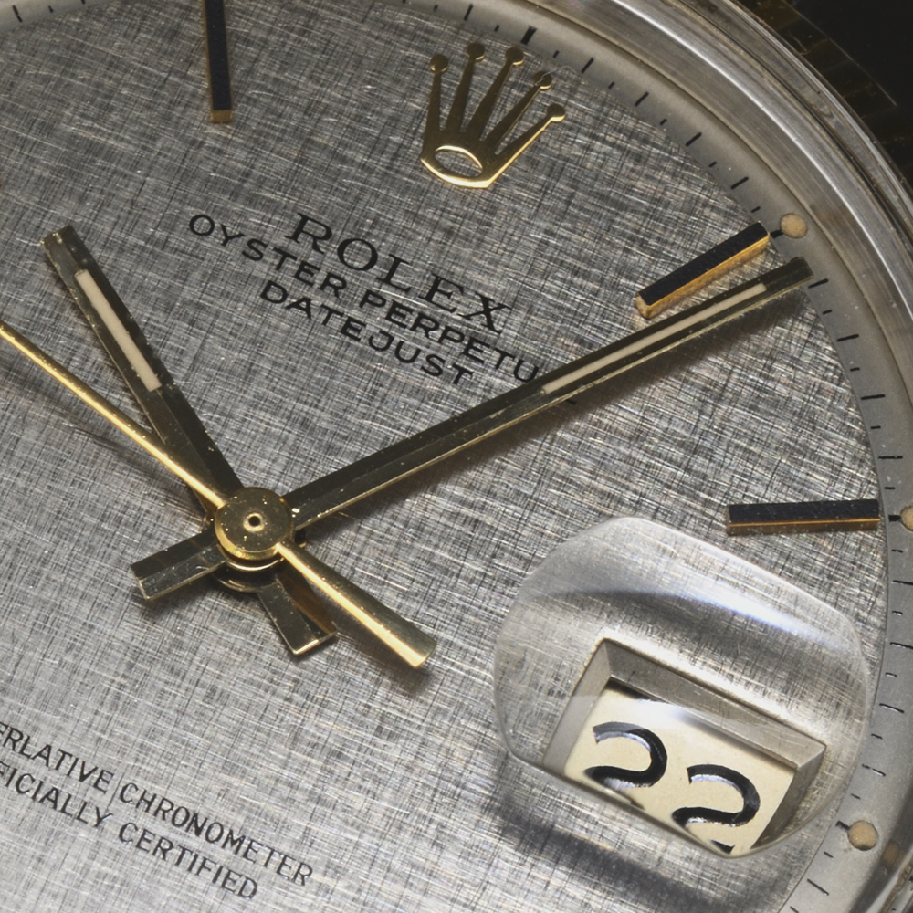 *なぜモザイク文字盤のような文字盤が存在するのかについては、経年変化に強い文字盤を作るために、逆の発想で最初からキズが付いたようなデザインを採用した、というのも理由のひとつかもしれません。