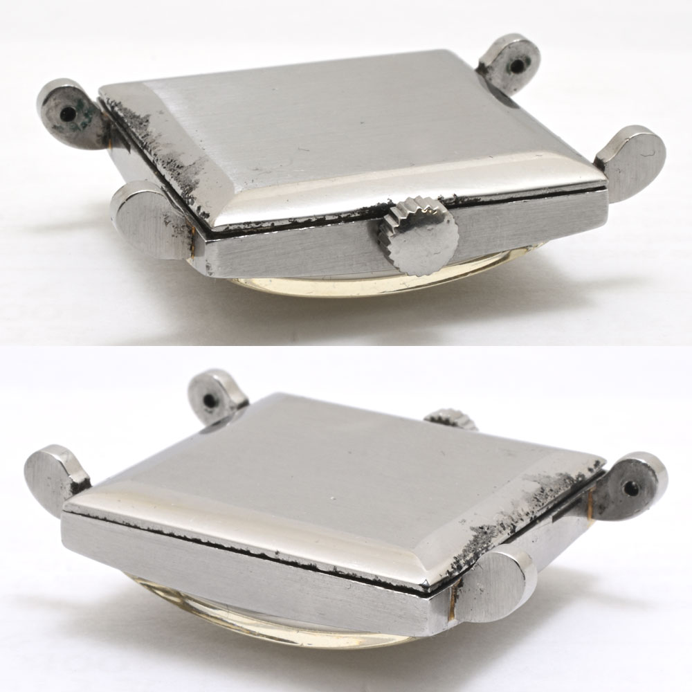 - *元々、非防水の時計ですが、腐食等により裏蓋とケースの間に隙間が見られますので、更に注意して着用してください。尚、古いスナップバック式は裏蓋が緩くなってしまっているものがありますが、この個体の場合はしっかり閉まっていますので、その点はご安心ください。