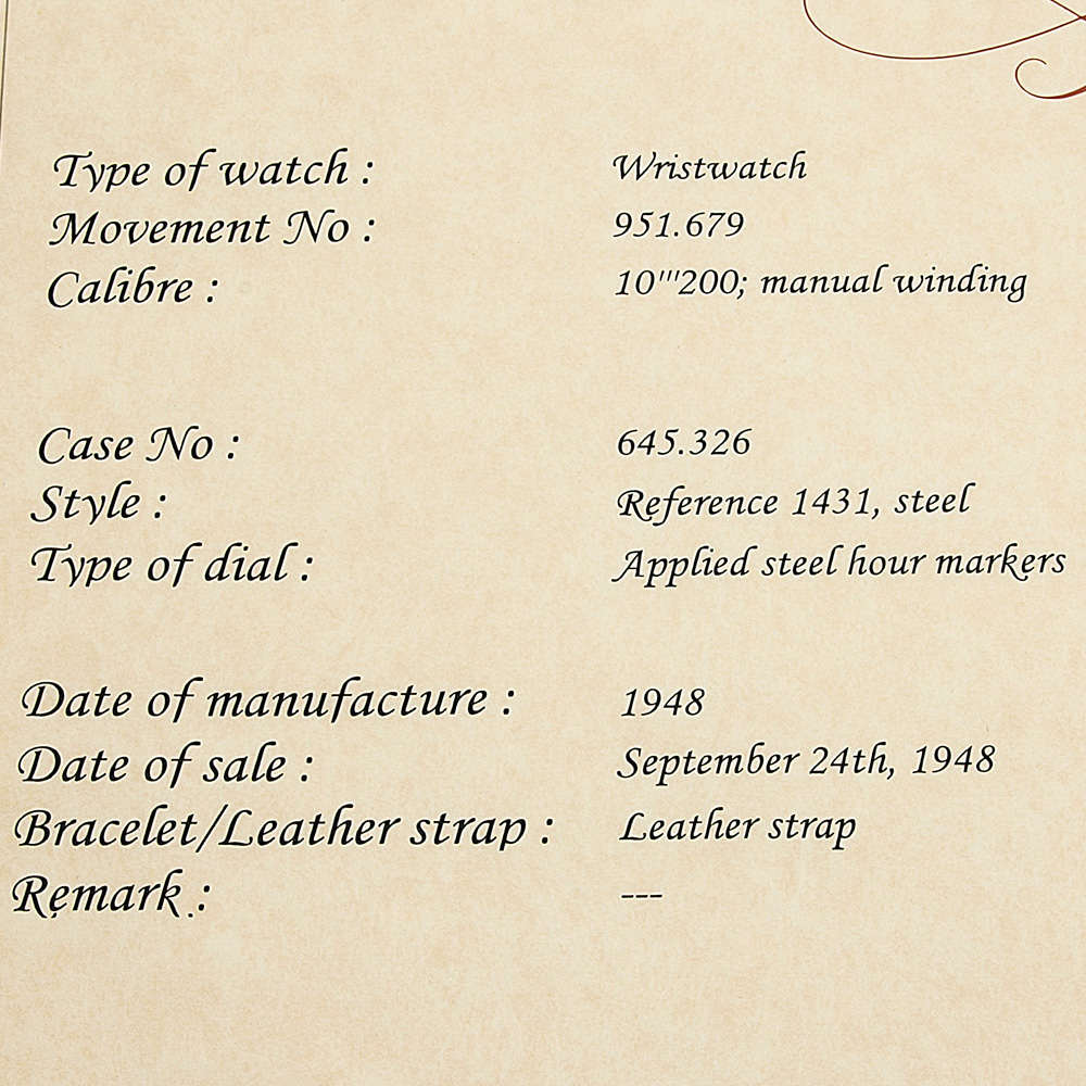 *このモデルのムーブメントにジュネーブシールの刻印はありませんが、1940年代のパテックはジュネーブシールの刻印がないものが一般的だと思います。ざっと調べてみたところ、1951年製で刻印あり、1953年製で刻印なしが確認できました。ほとんどのモデルに刻印が入るようになるのは1950年代半ば頃からだと思います。