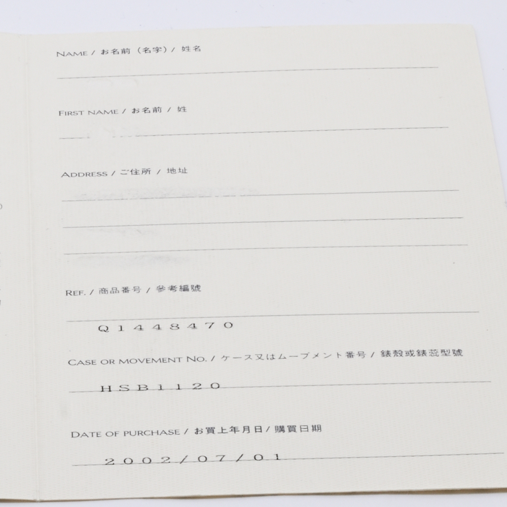 - 外箱 内箱 取説 冊子 保証書(2002年7月 国内正規) *内箱の表面素材は劣化が見られますが、現在のところ、ベタつきはありません。またボロボロと崩れ落ちる感じでもありません。個人情報欄は当店にて消しました。