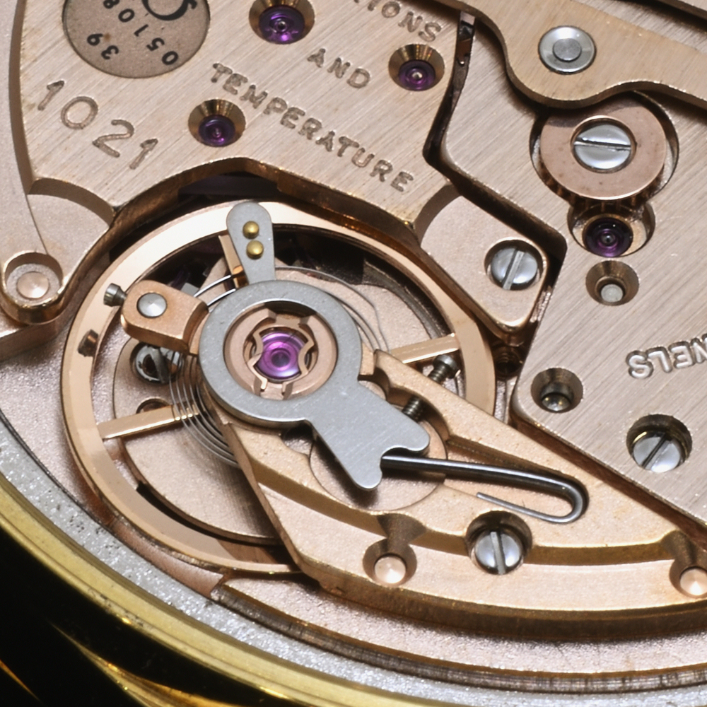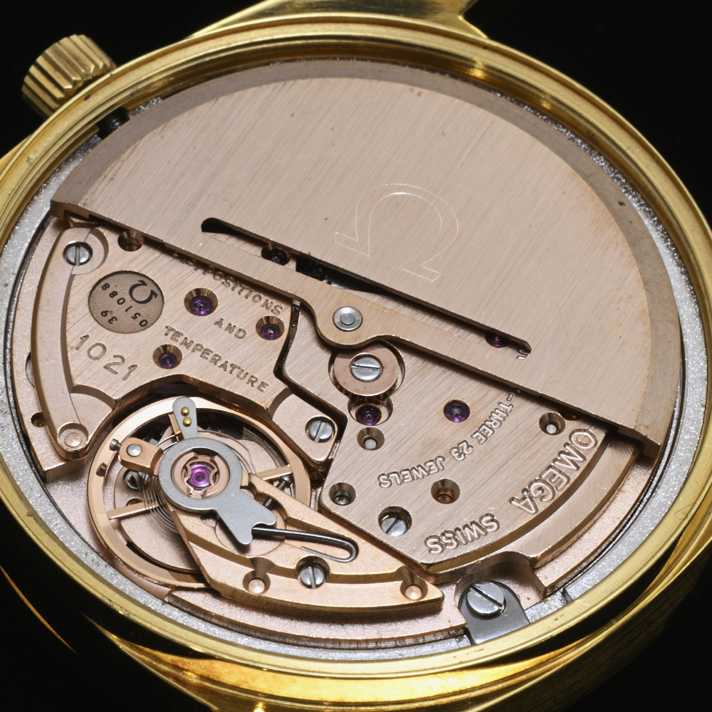 *1970年代のCAL.1000系は、1960年代のCAL.500系などと比べると、若干のコストダウン感が感じられるかもしれませんが、CAL.1000系は薄型化を追求したムーブメントと思われますので、分厚い印象のCAL.500系と比べて、そう感じるのかもしれません。例えばジャガールクルトのCAL.920ほどの見た目の美しさはないかもしれませんが、オメガのCAL.1000系も薄型ムーブメントとして眺めて見ると、なかなか美しいムーブメントだと思います。