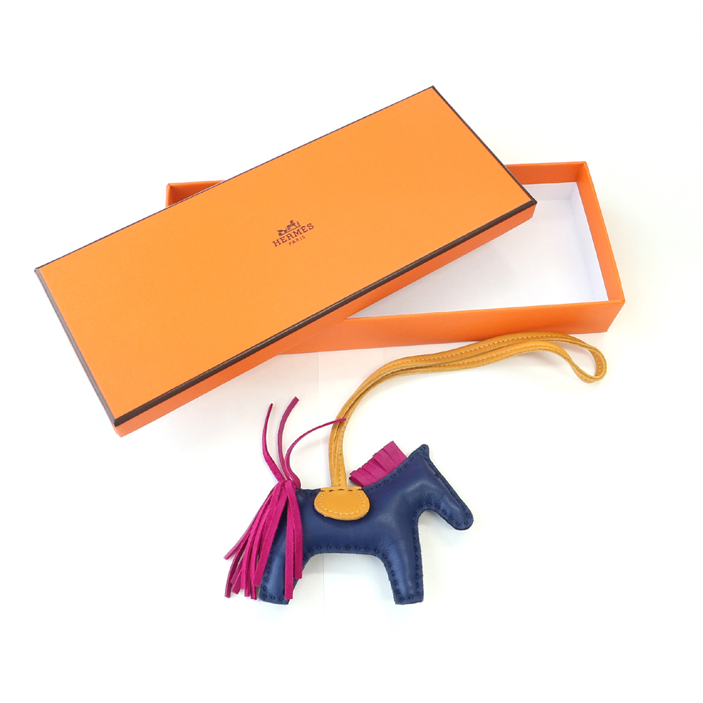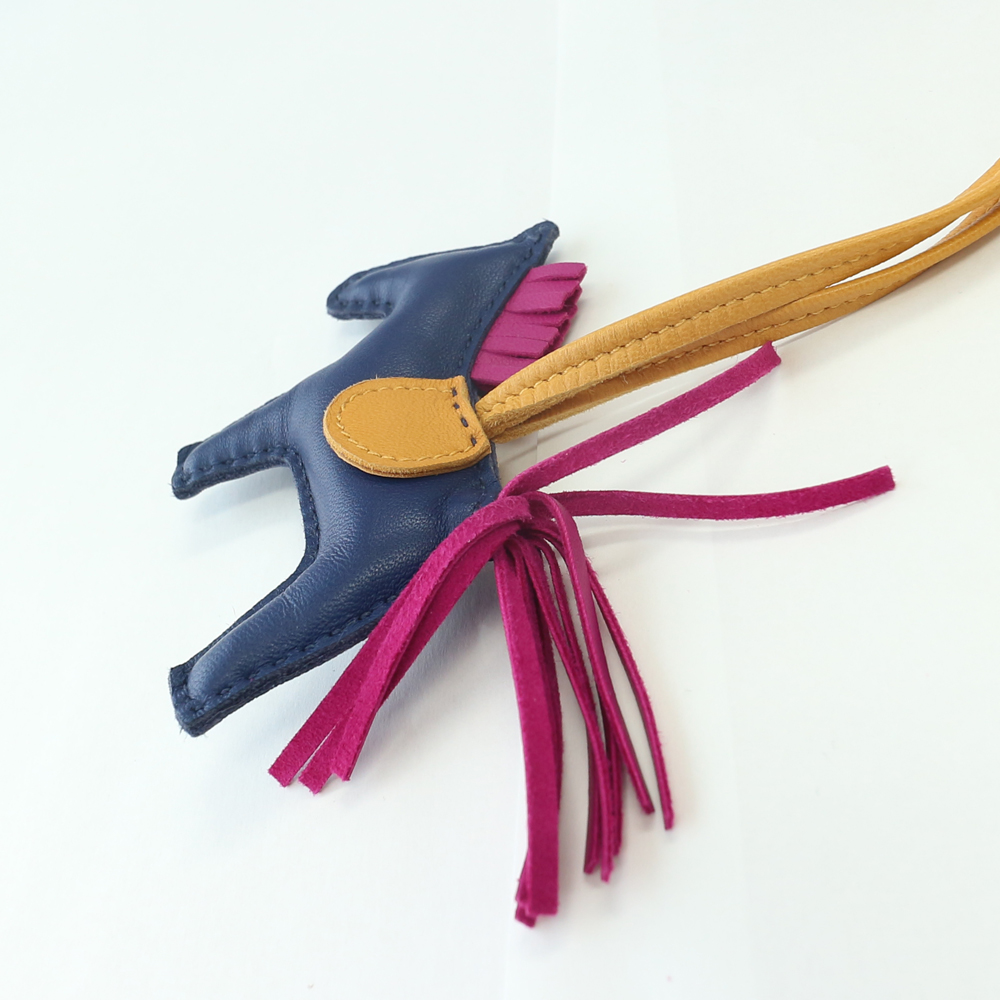 エルメス バッグチャーム ロデオPM アニョーミロ (ラムスキン)/ブルーサフィール×ローズパープル×ジョーヌドール